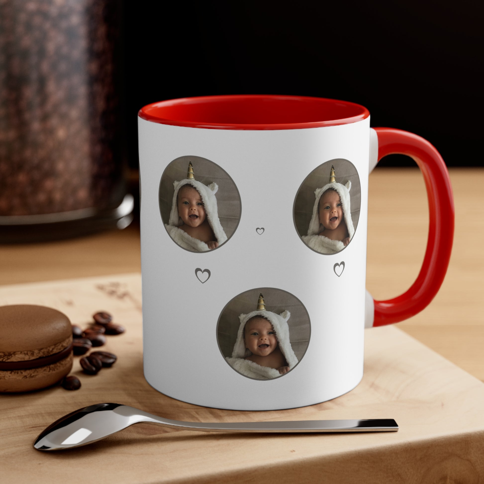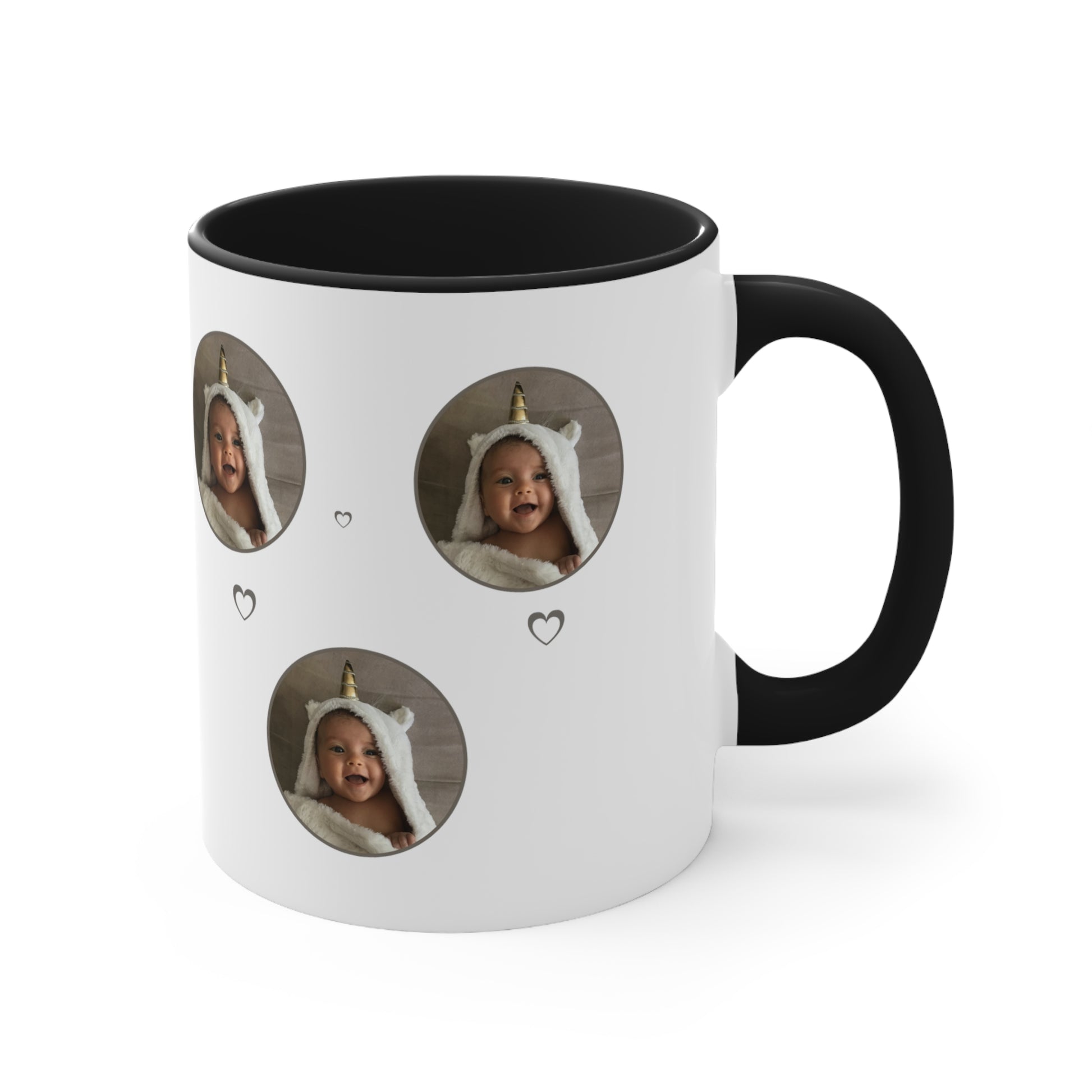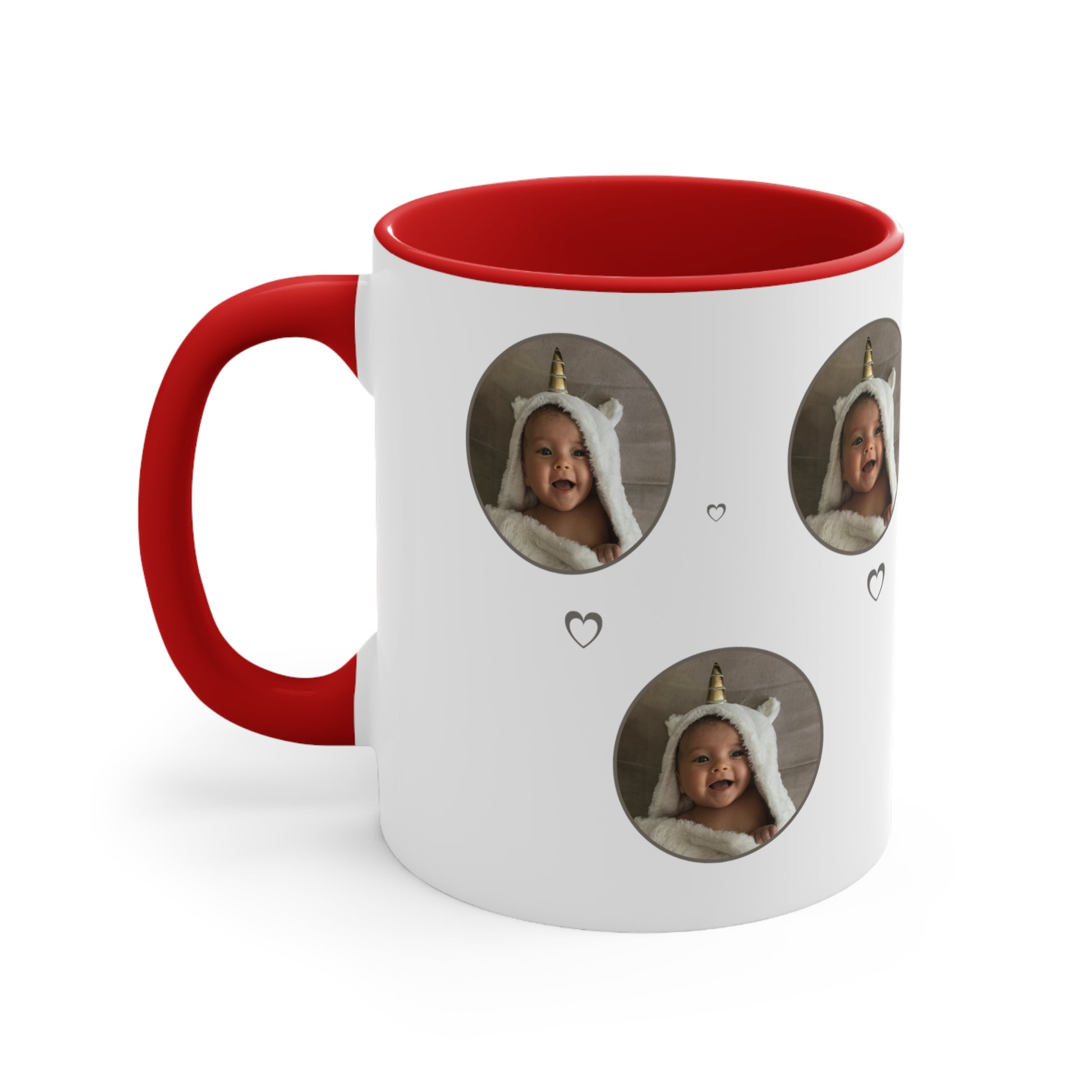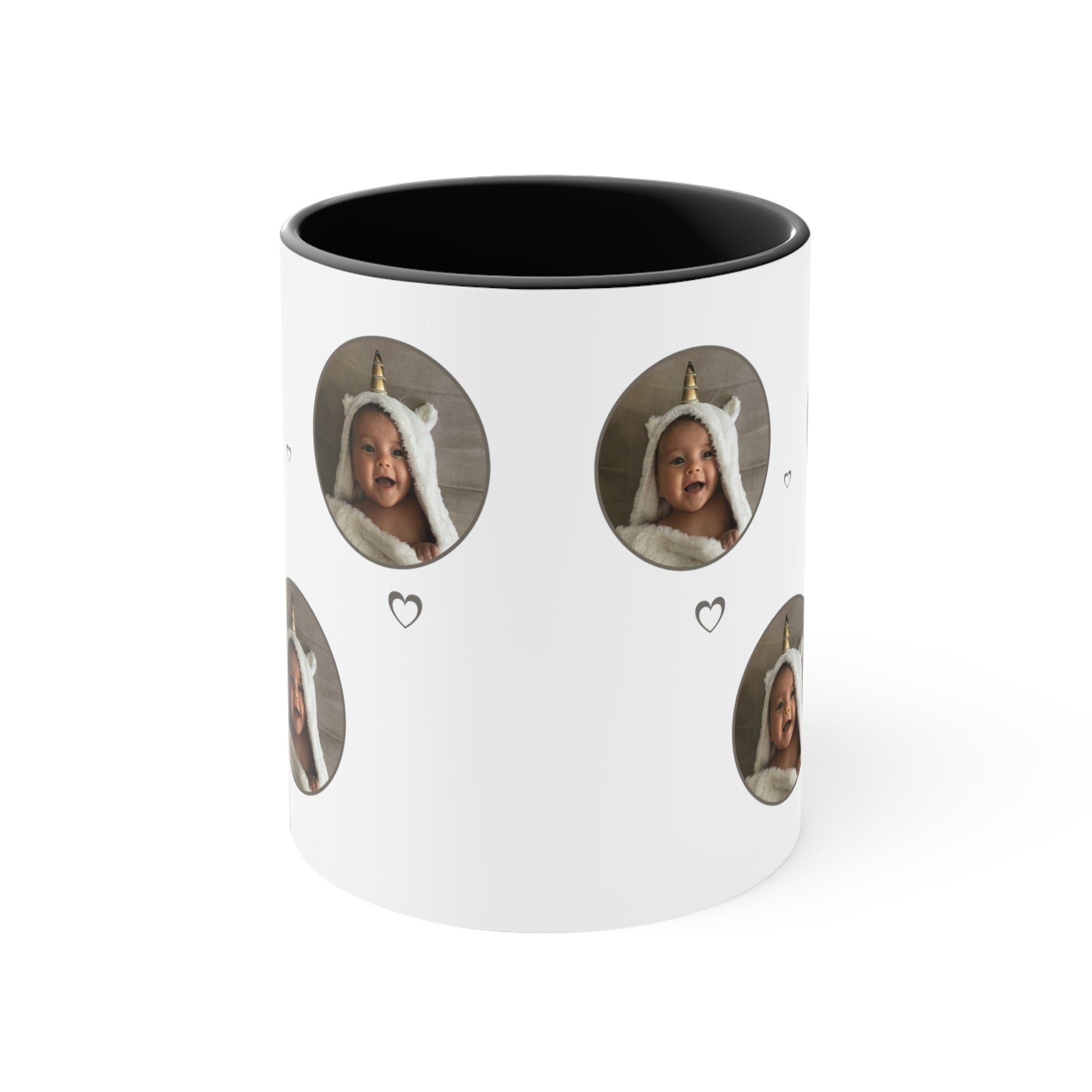 Add some color to your routine with this two-tone, custom accent coffee mug. This 11oz mug features an accented C-Handle that is comfortable to use, as well as an accented interior to add more contrast and character. With your design on this mug, you get an instant winner of a product.