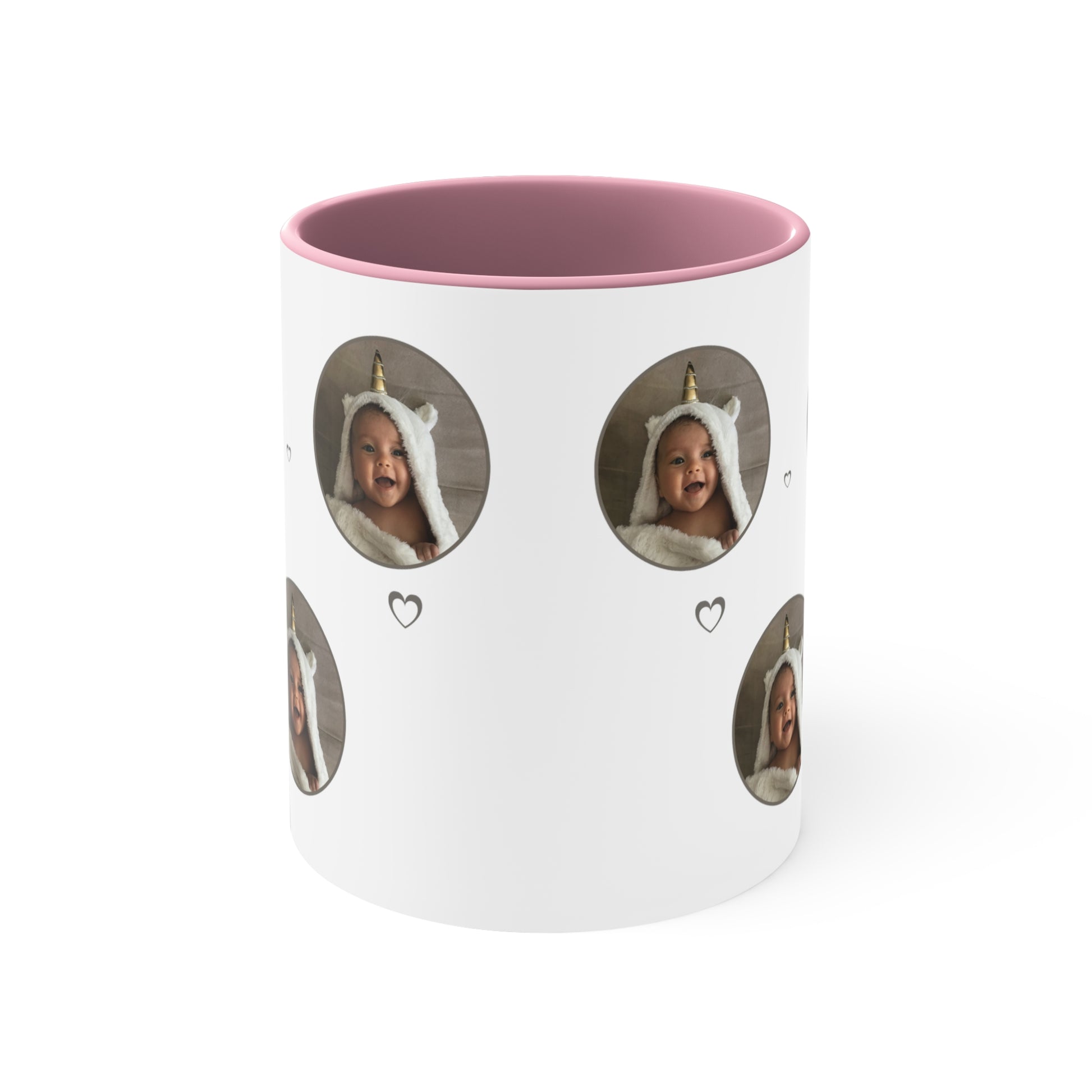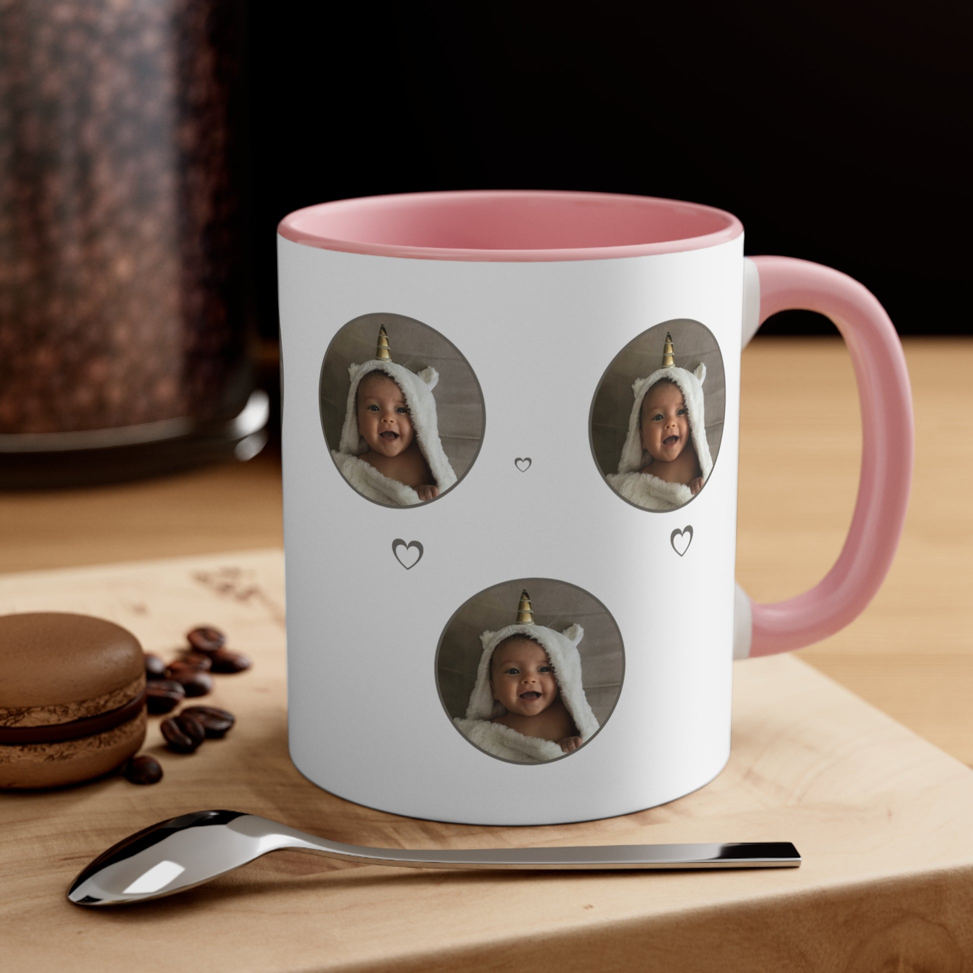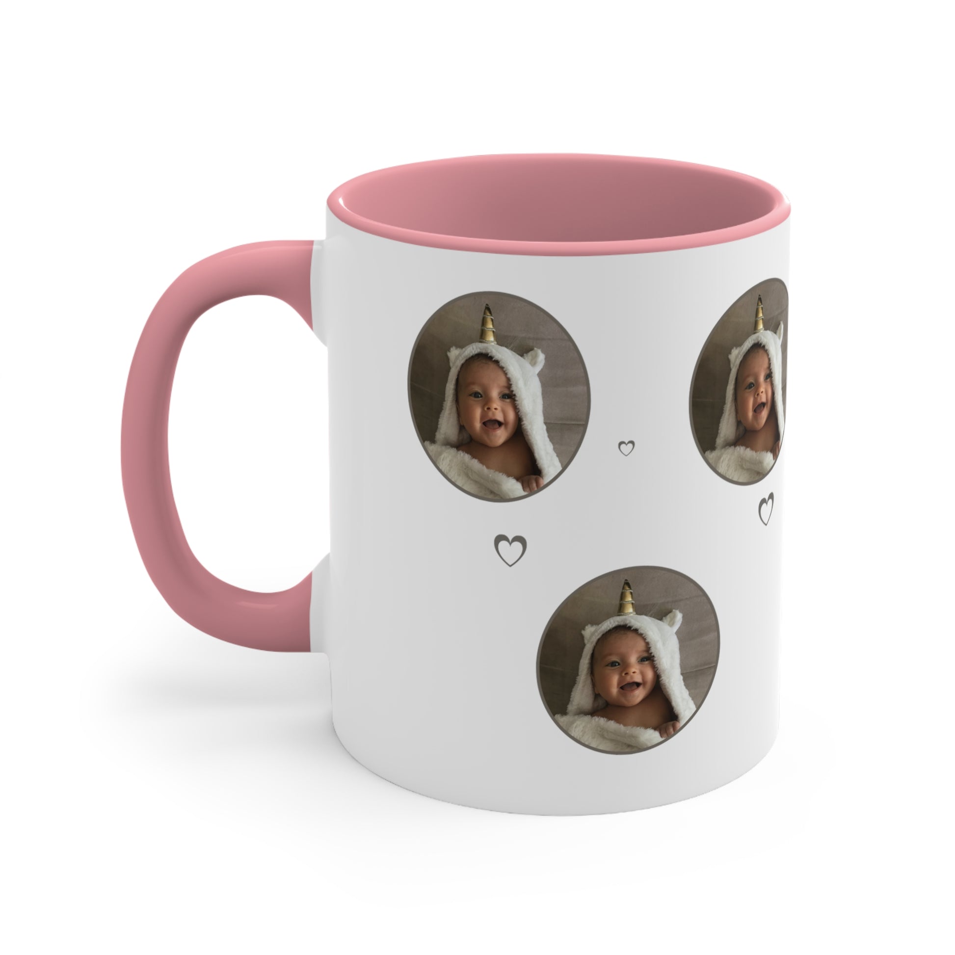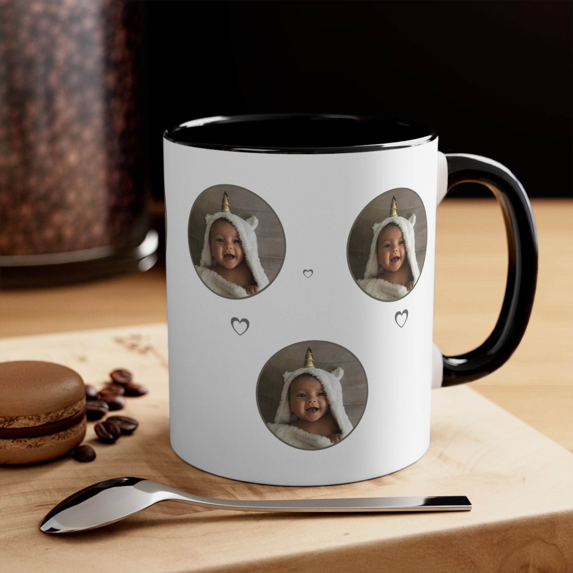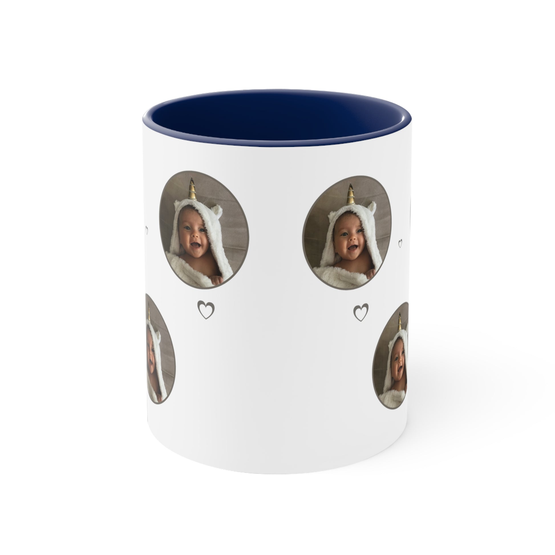 Add some color to your routine with this two-tone, custom accent coffee mug. This 11oz mug features an accented C-Handle that is comfortable to use, as well as an accented interior to add more contrast and character. With your design on this mug, you get an instant winner of a product.